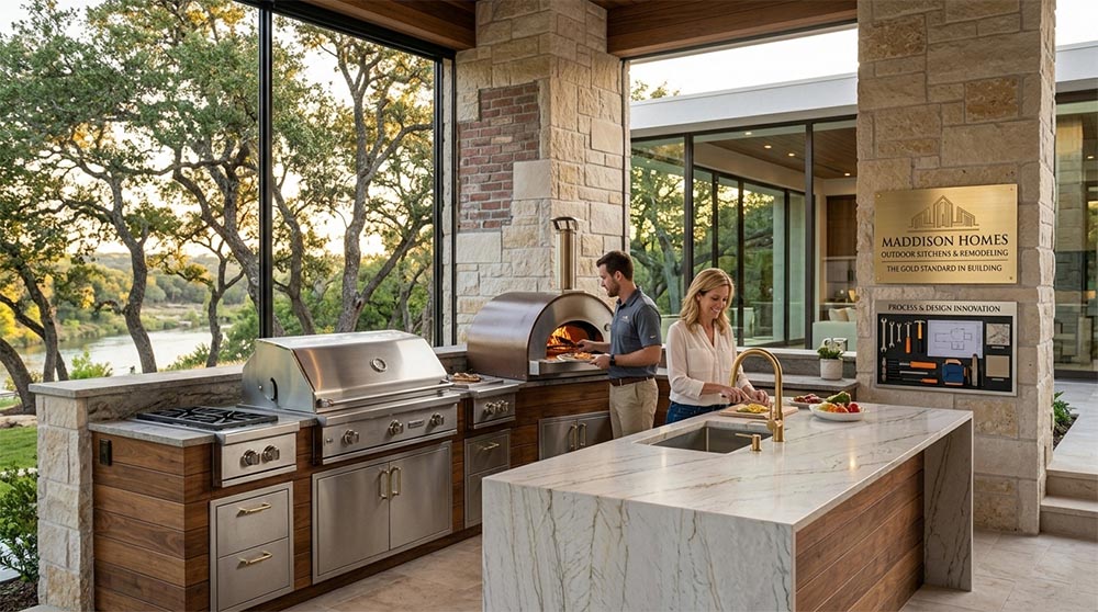Are you dying to experience that luxurious outdoor living of your dreams? Dream no more! Maddison Homes only designs the best functional outdoor living spaces. From outdoor kitchens to stony fireplaces, pool cabanas to decks and patios, your wish is our command.